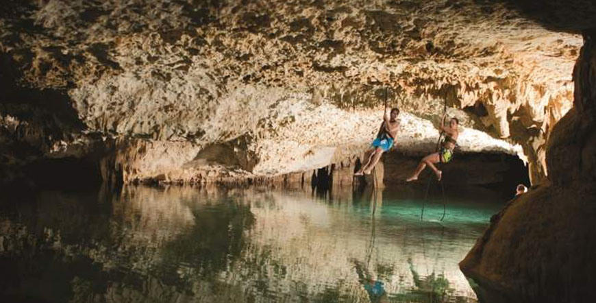 - 3. Rappel: desciende dentro del cenote Yaxmuul y nada en las relajantes aguas de esta piscina natural subterránea con hermosas formaciones geológicas.